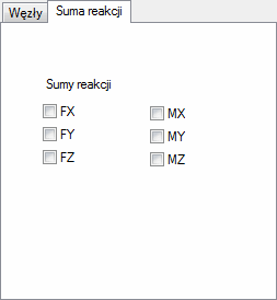 Opcja Całkowite jest dostępna tylko po wybraniu opcji Przemieszczenie; opcje Prędkość i Przyspieszenie są dostępne tylko dla przypadków całkowania równań ruchu (analizy czasowej).
