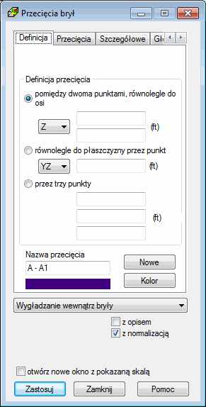 Opcja służy do prezentowania map na przecięciach przez bryły.