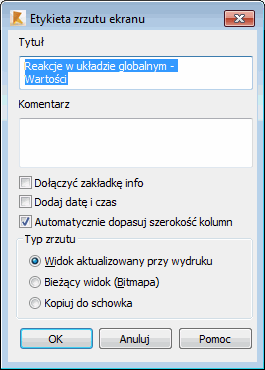 Użyj tego okna dialogowego, aby zapisać zrzut ekranu tabeli, który można ponownie użyć w dokumentacji projektu.