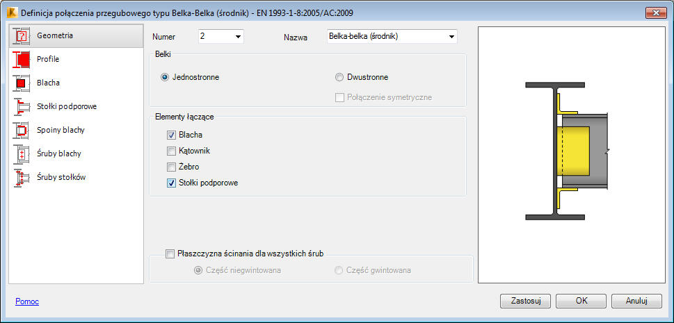 Opcje znajdujące się na zakładce Geometria pozwalają na zdefiniowanie podstawowych elementów połączenia: