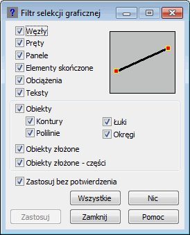 Jeżeli opcja ta jest włączona ( Jeśli ta opcja jest wyłączona, to podczas graficznej selekcji na ekranie graficznym pręty konstrukcji będą wybierane. |