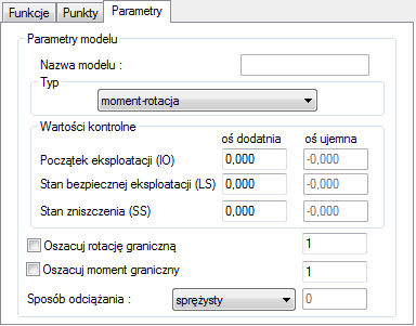 Po wybraniu karty Parametry w oknie Definicja modelu przegubu nieliniowego na ekranie pojawia się przedstawione poniżej okno dialogowe.