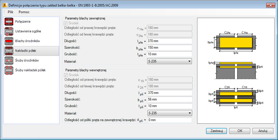 - Górne półki i Dolne półki dla połączeń belka-złącze belki