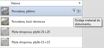Aby dodać materiał do bieżącego projektu, najpierw znajdź materiał w istniejącej bibliotece, a następnie użyj jednej z poniższych metod: