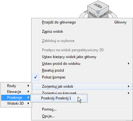 Używając narzędzia ViewCube, można zorientować widok 3D w dowolnym rzucie, widoku elewacji, przekroju lub widoku 3D w projekcie.