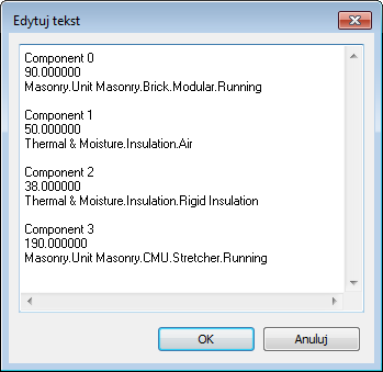 - Opis komponentu: lista komponentów ściany, ich wielkości i materiały