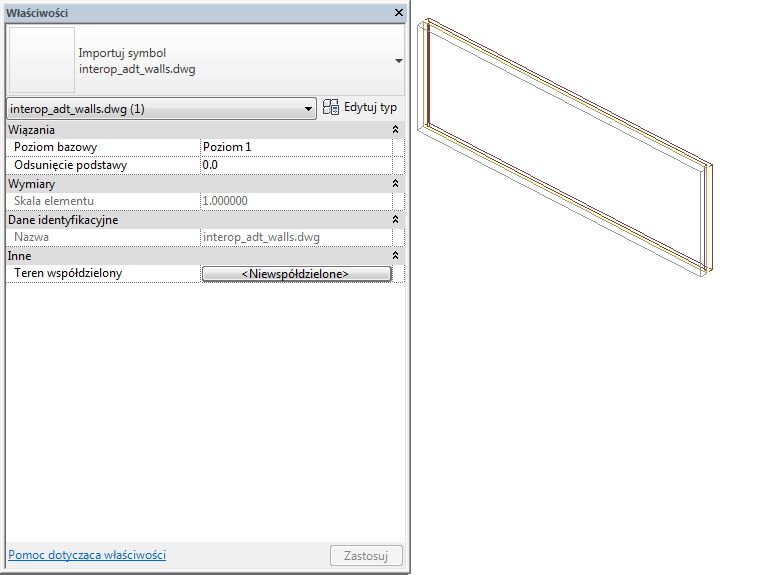 Do importowanej ściany dodawane są następujące właściwości: