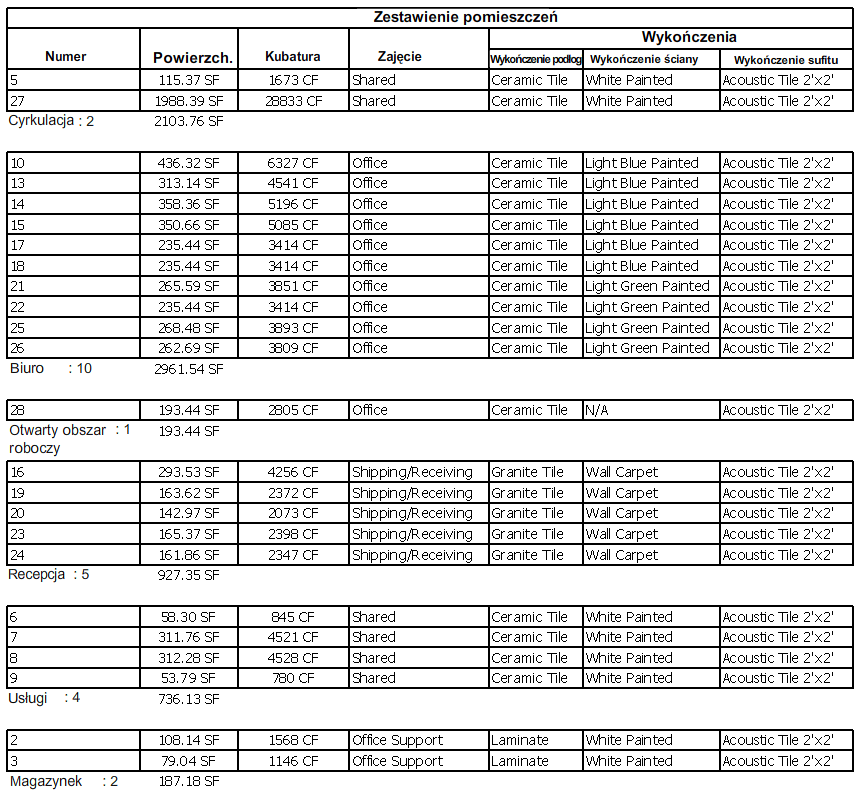 W przypadku zmiany właściwości komponentów budynku w projekcie związane zestawienia są aktualizowane automatycznie.