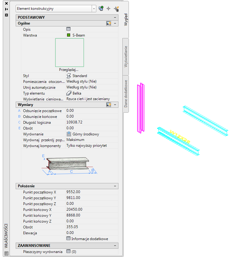 | Typ elementu (Belka/Stężenie/Słup) | Typ obiektu Revit |