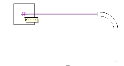 - W obszarze rysunku kliknij punkt końcowy rury kablowej, w którym chcesz umieścić łącznik.