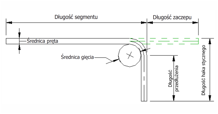 Poniższe ilustracje obrazują parametry określające zaczep zbrojenia.