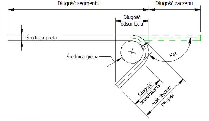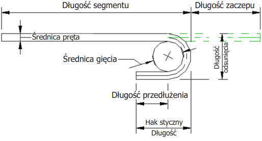 | Typ zaczepu zbrojenia | Jest to samowypełniająca się lista prawidłowych zaczepów zbrojenia dla tego typu zbrojenia. Wybór pola wyboru oznacza, że typ zaczepu będzie widoczny w parametrach zbrojenia Zaczep na początku i Zaczep na końcu. |