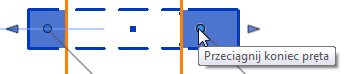 Przeciągnij kontrolkę końca elementu nośnego, aby dopasować długość elementu nośnego do pręta. Podczas przeciągania kontrolki naciśnij klawisz Shift, aby związać kierunek ruchu.