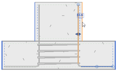 Linie zaznaczone na niebiesko są potencjalnymi odniesieniami wiązania dla segmentu zbrojenia. Kliknij niebieską linię odniesienia, aby przypisać nowe odniesienie wiązania. Wymiar zostanie odpowiednio zmodyfikowany. Kliknij wymiar, aby wprowadzić określoną odległość i naciśnij klawisz Enter, aby zastosować.
