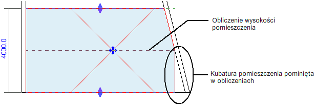 Przekrój pomieszczenia przy włączonym obliczaniu kubatury
