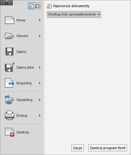 Kliknięcie przycisku Najnowsze dokumenty umieszczonego w menu aplikacji spowoduje wyświetlenie listy ostatnio otwartych plików. Za pomocą listy rozwijanej można zmienić porządek sortowania ostatnio używanych dokumentów. Pinezki umożliwiają trwałe pozostawianie dokumentów na liście, niezależnie od tego, kiedy były ostatnio otwierane.