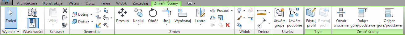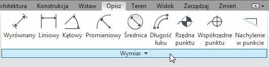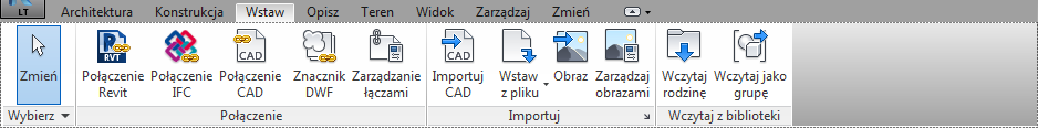 Wstążka jest wyświetlana podczas tworzenia lub otwierania pliku. Zawiera ona wszystkie narzędzia potrzebne do utworzenia projektu lub rodziny.
