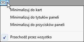 | określić preferowaną metodę minimalizowania wstążki | na prawo od sekcji kart wstążki kliknąć strzałkę w prawo i wybrać żądane zachowanie: Minimalizuj do kart, Minimalizuj do tytułów paneli, Minimalizuj do przycisków paneli lub Przechodź przez wszystko.