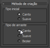 - Na implementação Método de criação, certifique-se de que Tipo inicial esteja definido como Canto e configure Tipo de arrasto como Canto.