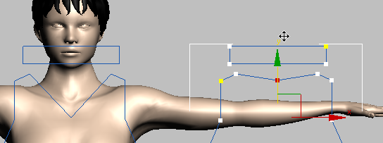 - Na viewport, desenhe um retângulo que será o padrão do colarinho. O retângulo deve estar acima do decote, à frente da boca da modelo.