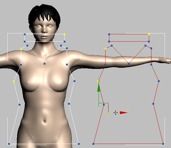 Arraste uma caixa novamente para selecionar os vértices no topo das alças dos ombros, mas não o ponto médio do decote ou o ponto central das cavas.