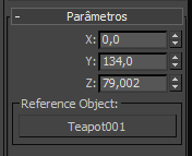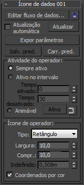 Depois que você criar um operador Dados, será possível salvá-lo como um operador Fluxo de partículas regular. Em primeiro lugar, exponha os parâmetros mais importantes. Neste caso, eles são os componentes de vetor; isto é, as configurações de Valor do suboperador Escalar e o botão do suboperador Selecionar objeto.