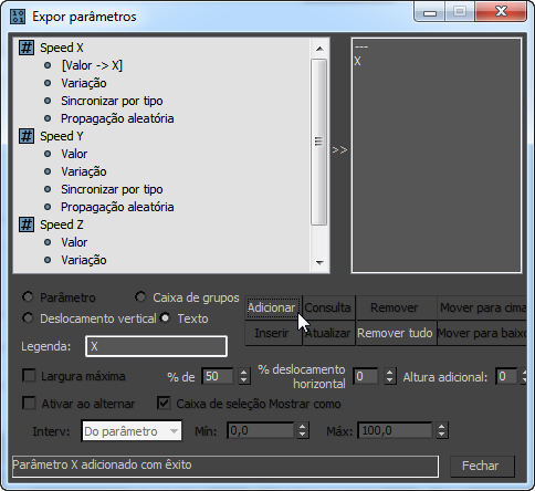 Será aberta a caixa de diálogo Expor parâmetros que permite coletar e identificar os parâmetros a serem expostos. Basicamente, ela é usada para criar a interface do usuário do operador.