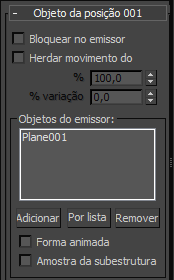 grupo Objetos de emissor, clique em Adicionar. No viewport, clique objeto Plane01.