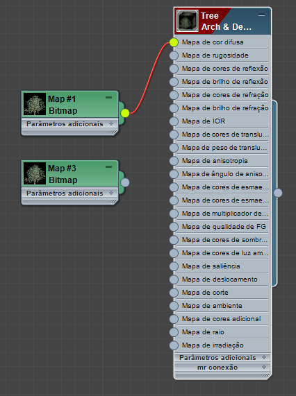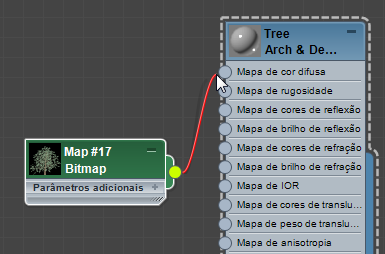 - Ligue o novo nó Bitmap ao soquete de Mapa de cor difusa do material Árvores.