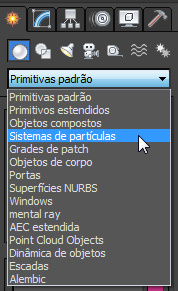 (Geometria). Abra a lista suspensa Objetos e escolha Sistemas de partículas.
