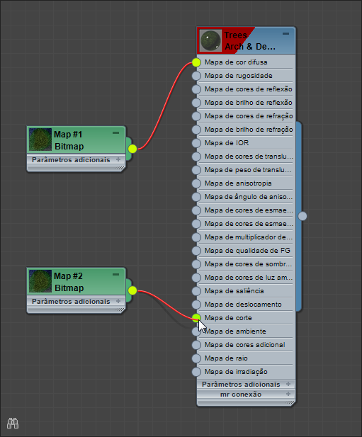 - Ligue a nova cópia de Bitmap ao soquete de Mapa de corte do nó de material Árvores.