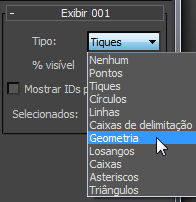 - Clique no operador Display 001 para realçá-lo. Na implementação Display 001, abra a lista suspensa Tipo e escolha Geometria.