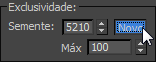- Clique no operador Position Object 001 novamente e, no painel de Parâmetros, role para baixo até o grupo Exclusividade. Clique em Novo para alterar o posicionamento das partículas. Continue clicando no botão até obter um agrupamento desejado.