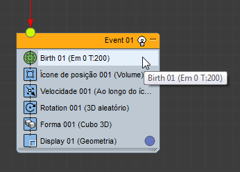 - No Event 001, clique no operador Birth 001 para realçá-lo.
