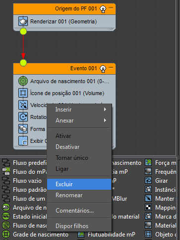 - Exclua também o operador Rotation 001, já que a orientação das partículas será orientada pela posição da câmera.