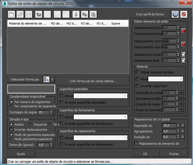 O 3ds Max abre a caixa de diálogo do Editor de estilo de objeto varrido (SOS).