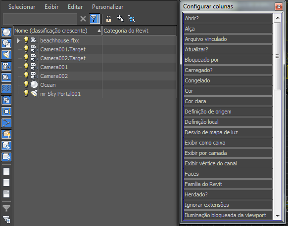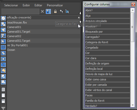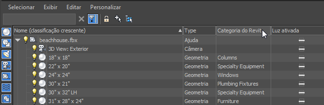 O 3ds Max adiciona a coluna Categoria do Revit ao Scene Explorer.