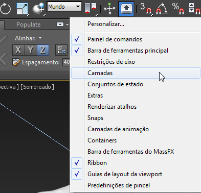 - Clique com o botão direito do mouse em uma área vazia da barra de ferramentas principal e, no menu suspenso, selecione Camadas.