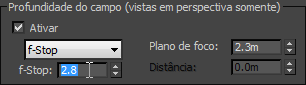 grupo Profundidade de campo, deixe a lista suspensa definida como Parada F (a configuração de abertura). Isso permite que você especifique o grau de desfoque dos objetos que não estão em foco.