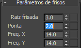 - Na implementação Parâmetros de frisos, altere Raiz frisada para 3.0 e Ponta frisada para 2.0.
