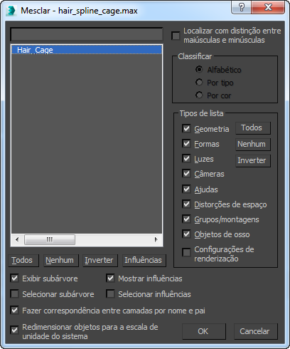 Na caixa de diálogo Mesclar, clique no objeto Hair_Cage para realçá-lo e, em seguida, clique em OK.
