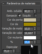 - Na implementação Parâmetros de material, altere os valores de Especular e Brilho para 15.0.