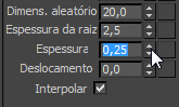 - Na implementação Parâmetros gerais, altere o valor de Espessura da raiz para 2.5 e o valor de Espessura da ponta para 0.25.