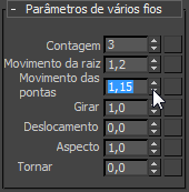 - Para o crescimento de cabelos a partir de splines, os valores padrão são diferentes dos de crescimento de cabelo a partir de polígonos.