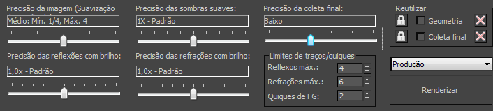 (Você pode perceber que na caixa de diálogo Janela de quadro renderizado, o status da Coleta final muda de "Rascunho" para "Personalizado", devido à alteração da Configuração de renderização).