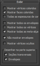 Vértices. Essa configuração é desativada por padrão, mas ela deve ser ativada para ajustar os pesos de vértices, portanto, sempre ative-a antes de iniciar uma sessão de revestimento com pele, usando o método descrito neste tutorial.