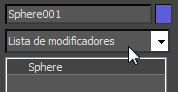 - No campo do nome do objeto do painel Modificar, clique duas vezes no nome Esfera001 para realçá-lo.