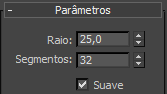 implementação de Parâmetros, altere a configuração de Raio para 25 e pressione Enter.