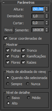 - Com a árvore ainda selecionada, na implementação de Parâmetros, defina Altura como 150.