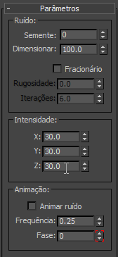 - No grupo de Ruído, ative Fracionário e, no grupo Força, defina X, Y e Z como 30.0.